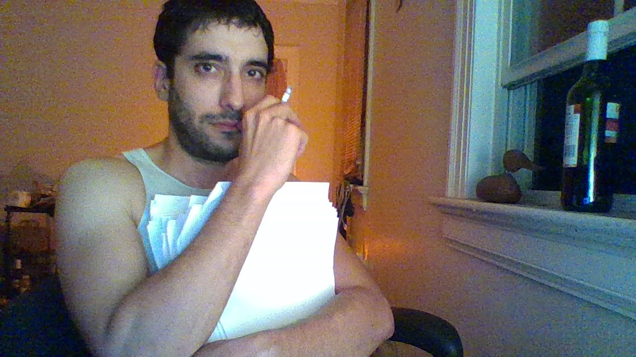 Saw myself tap out another sentence or so. Toy with the notion of a Marlboro half way down to the bone. Caught myself wearing a smile. One last pull from the burgundy, and then a snub, putting out that ember with the clear understanding that the decision to stop was entirely mine.